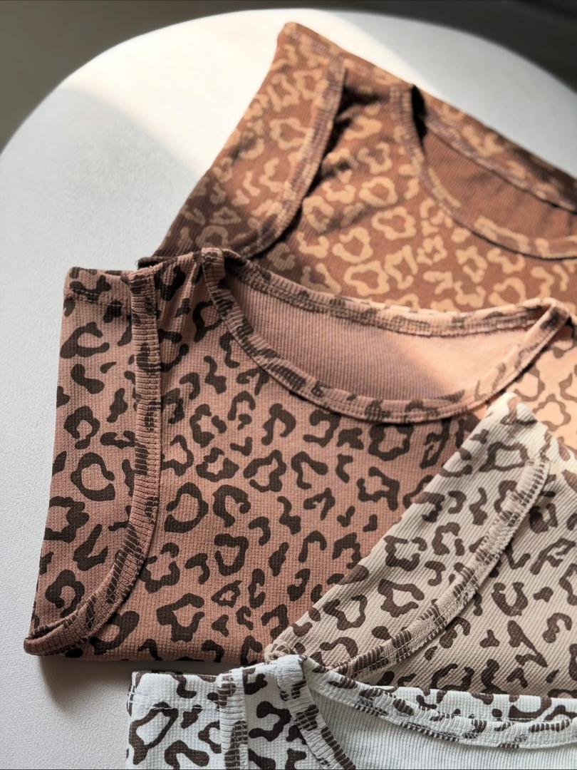 کراپ زنانه جنس کبریتی کشی طرح پلنگی حلقه ای یقه گرد