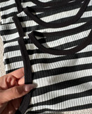 کراپ زنانه جنس کبریتی راه راه سفید مشکی بیسیک حلقه ای یقه گرد