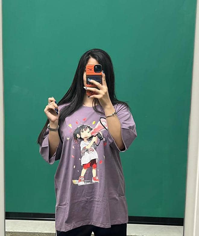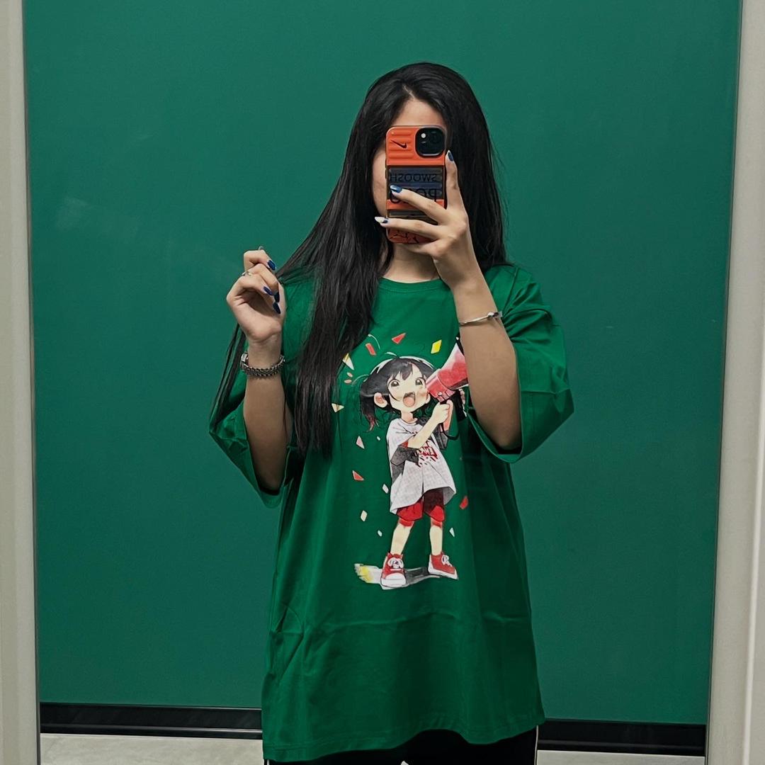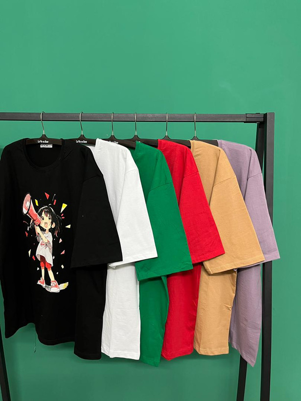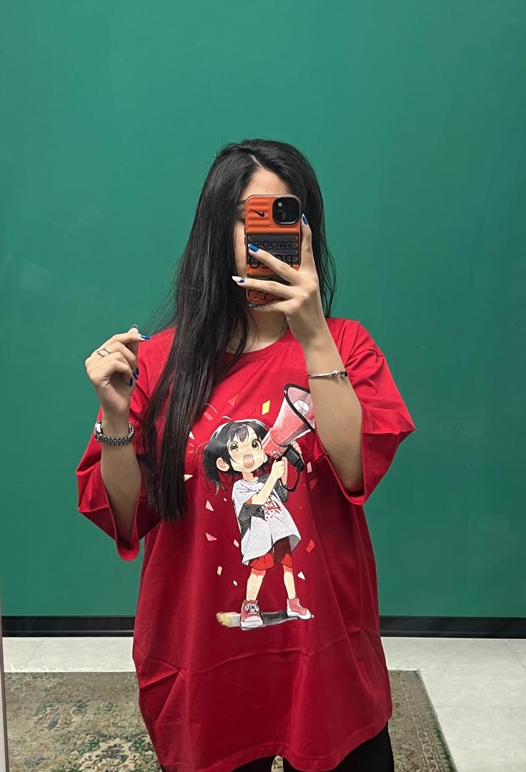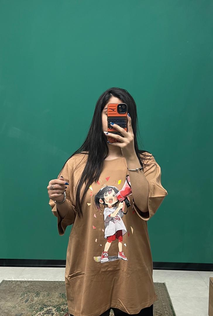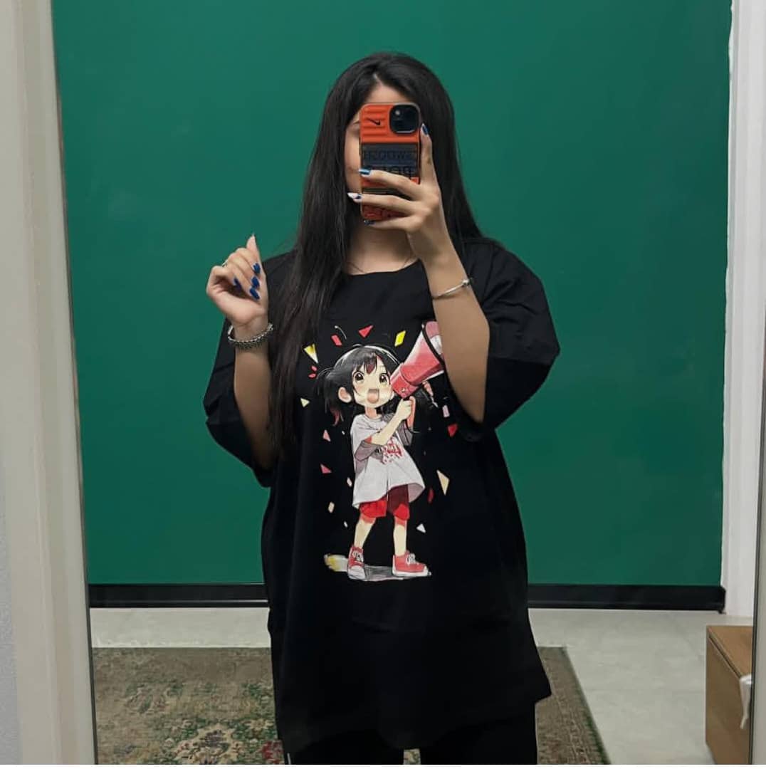 تیشرت زنانه جنس نخ پنبه لانگ چاپ انیمه یقه گرد